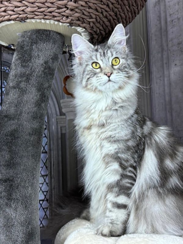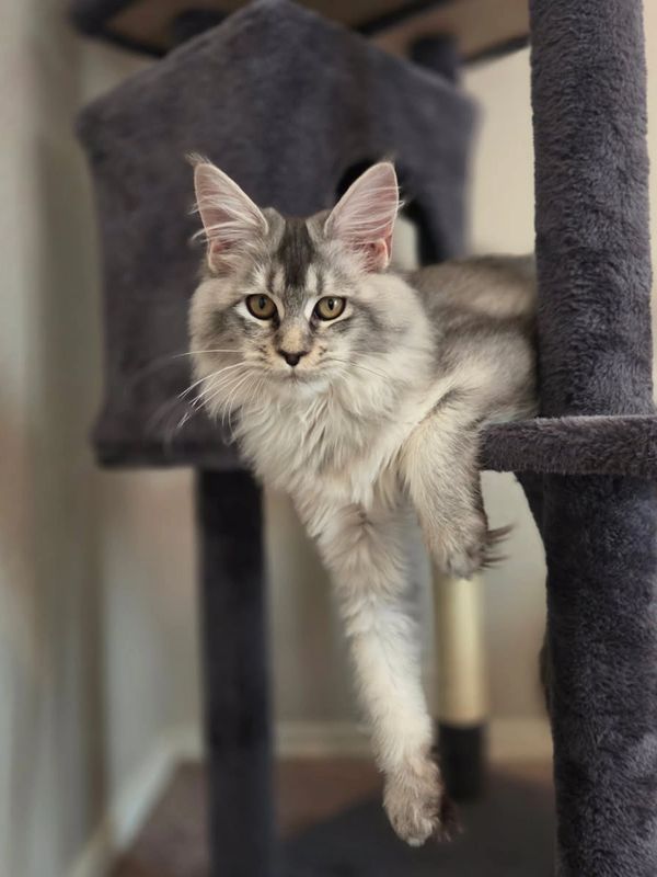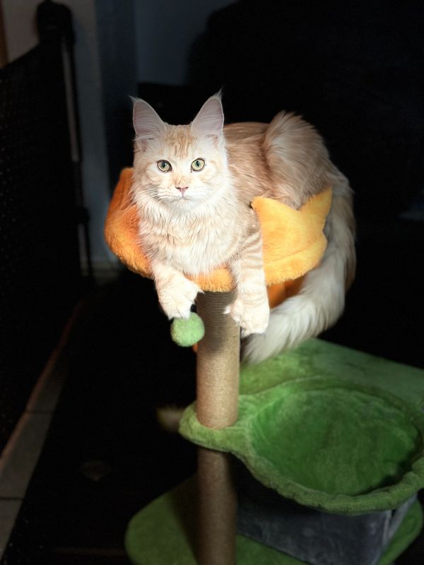 In the heart of our home reigns Aphrodite, a breathtaking Maine Coon whose name channels the goddess of love and beauty—and she lives up to it in every whisker. With her lush, silken coat, mesmerizing eyes, and graceful poise, Queen Aphrodite is not just a cat—she’s a living legend.